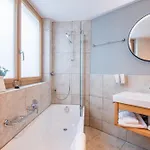 De accommodatie heeft een balkon en een zitruimte en is ingericht met een bank en een bureau en voorzieningen zoals breedbandinternet en een flatscreen TV met satellietzenders om van te genieten. Chalet Lea Appartement appartement|Chalet Lea Appartement heeft een parketvloer en is ook versierd een stenen open haard en geluiddichte ramen, wat bijdraagt aan de charme en het karakter. De accommodatie heeft 3 slaapkamers met veren kussens. Bovendien biedt het appartement elektrische dekens aan. De badkamer is voorzien van een inloopdouche, een apart toilet en een badkuip naast een haardroger en handdoeken.